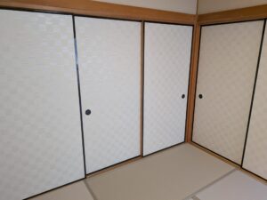 高槻市高垣町 和紙灰桜色新畳と襖と障子の張り替え新着!!