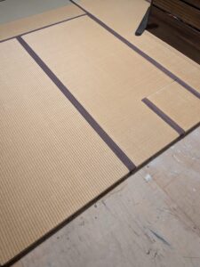 今回のお客様は数カ月前に他のお部屋の畳と襖と障子を施工さして頂いたリピーター様です(^^♪普段は海外でお仕事されてまして何カ月に一度戻られるらしいです。前回は幅広でしたので中国産の綿W 今回は6間なので熊本産の糸引きでの施工です。