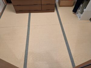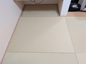 今回のお客様は当社HPご覧になりお見積り 大手畳屋さん含め3社?ほど相見積もりだったみたいですがご縁があり当店での発注となりましたm(__)mリビングの和室は琉球畳に新調 パソコン下は小さい縁付きをサービス 子供さん部屋は可愛らしく乳白色×白茶で表替えです♪