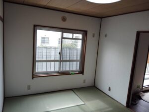 島本町青葉ハイツ 熊本産新調畳とクロス張替 2026年3月18日 最終更新日時 : 2026年3月14日 toguchi 今回のお客様は当社HPご覧になりお見積り即発注頂いたお客様です(^^♪お家を購入されての畳替え DIYで色々施工されたみたいですが最終和室の壁は邪魔くさくなられたみたいでお声掛けしてついでに施工さして頂きましたm(__)m 施工前 施工後 施工前 施工後 今回の仕様 熊本産ひのみどり品種JAS2級新畳 13000円×10,7枚 古畳引き取り1000円×10,5枚 4畳半 6畳壁クロス張替50m 60000円格税抜きでした♪