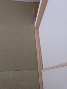 高槻市 お寺の居間新調畳 2025年10月9日 最終更新日時 : 2025年10月4日 toguchi 今回のお客様は建築会社さんからのご依頼でお寺の居間の畳替えです 60年?ぐらい使われてかなりくたびれてまして新畳での施工です、建物自体の築年数もかなりなので歪みも酷くまぁまぁ難儀な感じでしたがなんとかクレーム来ない程度に仕上がりました♪ 施工前 ええ感じに痛んでます。。 施工後 今回の仕様 本間涼風綿W新調45mm仕上がり 12帖入れ替えでした。