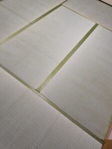 高槻市 宮之川原 熊本産ひのみどり品種綿W特表替え 2025年11月19日 最終更新日時 : 2025年11月8日 toguchi 今回のお客様は毎日バスで通るとの事で飛び込み見積もり即発注頂いたお客様です(^^♪とりあえず下見築40年超えの木造 普通でしたら新調畳なのでしょうが、西播の高級な藁床が入ってまして手直したら全然綺麗になる畳床少し藁床の補修費頂いての張替です。 施工前忘れの 施工後と QRタグです 今回の仕様 熊本産ひのみどり品種 特の綿W 縁代手直し込みの10500円×12枚 税別 滅茶苦茶良い匂いがすると仰ってました(^^♪ 中国産の匂いと違い熊本産の藺草は良い香りがします⤴