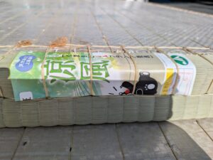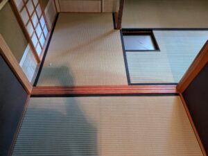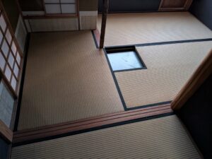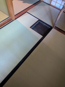 今回の仕様 熊本産涼風本間麻綿w 縁金黒純綿表替え 今水害で熊本産の特に本間は高騰してますが4枚残りがあったのでリーズナブルな価格で施工出来ました 金黒入れて15000円×4枚 炉の切り欠き手縫い3000円 税込み69300円でした♪
