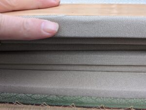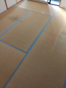 反りやすいので今回は普通の藺草から和紙畳に新調入れ替えです 裏と表に2㎜と1㎜の反り防止を入れての施工です(^^♪