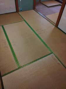 高槻市郡家本町 熊本産ひのみどり新調6枚と張替12枚と床下張替 2026年1月13日 最終更新日時 : 2025年12月27日 toguchi 今回のお客様はぶらぁ~っと訪ねて来られたご高齢のご夫婦です(^^♪畳を替えたいとのご要望 1階の和室は湿気で駄目なので新畳と床下コンパネの張替 2階は家具移動しながら12帖表替え 大工さんと応援入れて即日仕上げです(^^♪ 1階和室施工前 湿気でぶかぶかなので入れ替えです。 施工後 2階 施工前 2階 施工後 今回の仕様 熊本産ひのみどり特表替え8500円×12枚 新調畳15500円×6枚 古畳引き取り込み 床板張替50000円 各税別でした♪お家での工事は1日だけです⤴