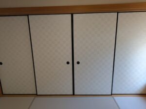 ダイケン和紙灰桜色新畳6帖×2部屋 襖新鳥の子 取り合い×4枚 押し入れ戸襖×5枚 地袋×2枚 障子4倍強度タフトップ無地×6枚