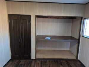 高槻市クロス工事 壁天クロス 押し入れクロスと床CF上張り 2026年1月10日 最終更新日時 : 2026年1月5日 toguchi 施工前 施工後 今回の仕様 洋間10帖 壁天クロス張替 押し入れ壁クロス張り 洋間CF上張り 押し入れ上段CF上張りでした♪ 追加でほかのお部屋の見積もりも頂き有難うございますm(__)m