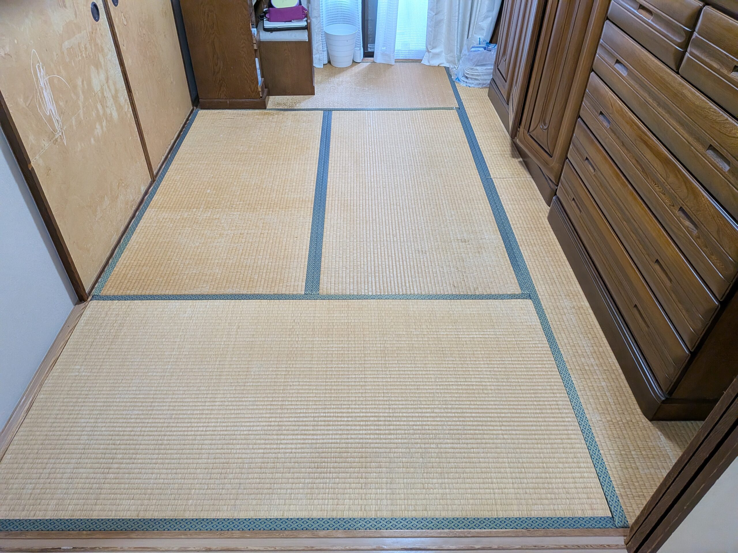 今回のお客様は当社HPご覧になりお見積り即発注頂いたお客様です(^^♪猫ちゃんがいるので、水拭き出来る畳がご要望 セキスイ美草モカベージュでの施工です⤴縁は可愛くピンク色 襖も格子柄で可愛らしく仕上がり大変喜んで頂きまし […]